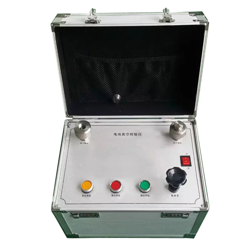 箱式電動真空壓力校驗源(以下稱電動壓力源)為箱式自備電動氣壓源。采用低功率、轉速平穩、真空率高的電動真空壓力泵加之二次螺旋增壓泵,和壓力指示表、壓力儲存容器、微調、回檢閥、截止閥及壓力輸出接口管路組成一個高穩定性的氣壓發生源。該電動校驗臺外形美觀、結構精巧、操作簡單,與精密壓力校驗表配套使用,是校檢壓力變送器、差壓變送器、彈簧管式普通(精密)壓力表、壓力真空表、壓力檢制器的理想標準器。